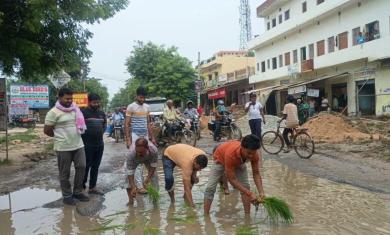 गड्ढों में धान की रोपाई कर जताया विरोध,बदहाल सड़क पर फूटा लोगो का गुस्सा