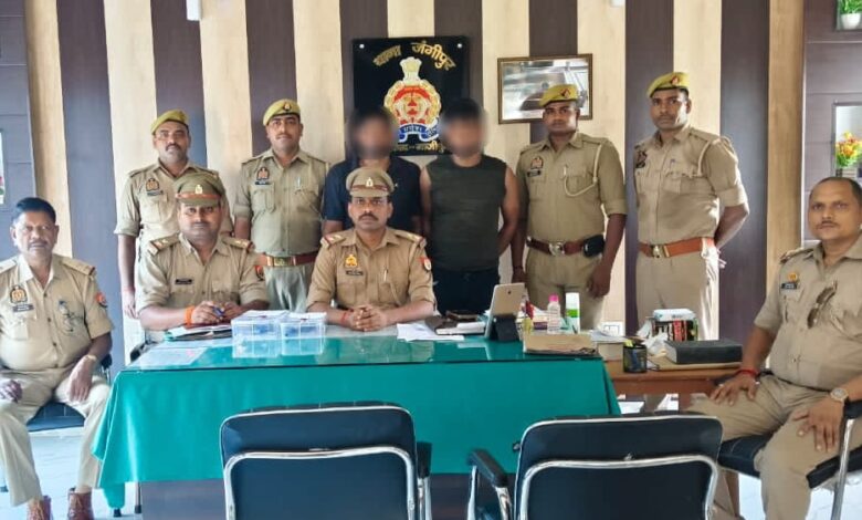 *कब्जे से 02 अदद अवैध देशी तमन्चा .315 बोर, 02 अदद खोखा कारतूस 0.315 बोर व 01 अदद चोरी की दो पहिया वाहन बरामद।अपराध एवं अपराधियों के विरूद्ध चलाये जा रहे अभियान के तहत दिनांक-23.07.2025 को थानाध्यक्ष जंगीपुर को सूचना मिली कि पुलिस अभिरक्षा से फरार अभियुक्त बलिया रेलवे स्टेशन के पास मौजूद है , उक्त सूचना पर थानाध्यक्ष विवेक कुमार तिवारी मय पुलिस बल द्वारा जनपद बलिया रेलवे स्टेशन के पास पहुँचे तो एक मोटरसाईकिल में उक्त फरार अभियुक्त अपने एक अन्य सहयोगी के साथ फेफना की तरफ निकल रहा था, पुलिस बल की गाड़ी को देखते ही उक्त दोनो बदमाश मोटरसाईकिल के साथ भागने लगे घेरा-घारी करते हुए उनका पीछा किया गया तो रामपुर जीवन थाना जंगीपुर गाजीपुर पुल के पास उक्त दोनों बदमाशों द्वारा पुलिस वालों पर जान मारने की नियत से फायरिंग की गई किन्तु हिकमत अमली से दोनो अभियुक्तो को मय अवैध असलहा व चोरी के वाहन के साथ पकड़ लिया गया जो थाना स्थानीय पर पंजीकृत मु0अ0सं0 135/25 धारा 309(4) 317(2) बीएनएस व मु0अ0सं0 136/25 धारा 109(1) बीएनएस व 3/25 आर्म्स एक्ट तथा थाना कोतवाली में पंजीकृत मु0अ0सं0 516/25 धारा 261/262 बीएनएस में वांछित/पुलिस अभिरक्षा से फरार 50,000 रुपये का ईनामिया अभियुक्त 1.शिवम चौहान उर्फ परमहंस पुत्र रवीन्द्र चौहान निवासी ग्राम चैनपुर थाना रानीपुर जनपद मऊ व सहयोगी अभियुक्त 2. सत्यम चौहान उर्फ चुनमुन चौहान पुत्र रवीन्द्र चौहान निवासी ग्राम चैनपुर थाना रानीपुर जनपद मऊ को गिरफ्तार कर विधिक कार्यवाही पूर्ण कर जिला कारागार गाजीपुर भेजा जा रहा है ।