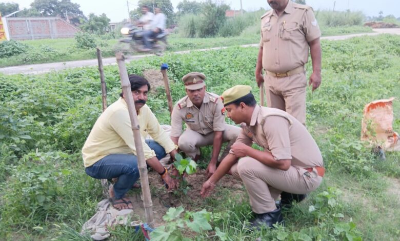परशुराम मौर्य और चौकी प्रभारी सर्वजीत यादव के द्वारा पौधरोपण