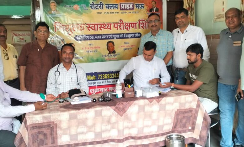 मऊ।दौड़ भाग व आपाधापी भरी जिंदगी में लोग स्वास्थ्य की समस्या को अनदेखा करते नजर आ रहे हैं, जो आने वाले समय में काफी नुकसानदायक साबित होता है।ऐसे में समय-समय पर अपने स्वास्थ्य की जानकारी स्वस्थ जीवन के लिए एक प्रभावी होता है। जिस प्रकार हम तय समय पर अपने शरीर की नियमित देखभाल वह दिनचर्या का अनुपालन करते हैं।ठीक उसी प्रकार समय-समय पर स्वास्थ्य संबंधी जांच भी आवश्यक होता है। उक्त बातें शुक्रवार को रोटरी क्लब प्राइड द्वारा आयोजित निशुल्क जांच शिविर के दौरान लोगों को संबोधित करते हुए वरिष्ठ रोटेरियन डॉ पीके गुप्ता ने कहा।