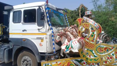 डम्फर व शादी रथ की आमने-सामने जोरदार टक्कर,दो घायल