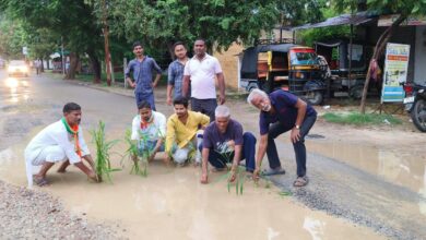 जर्जर सड़क को लेकर कांग्रेस कार्यकर्ताओं का प्रदर्शन,तीन दिन में सुधार की मांग अन्यथा आन्दोलन