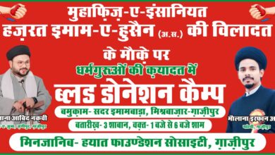 इमाम हुसैन के जन्मदिन पर रक्तदान शिविर का आयोजन आज